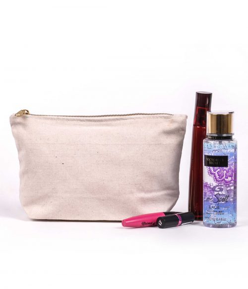 Personalise our Natural Zip up Bag which can either be used for make up or as a bag for your childs little toys, keeping them in one place.