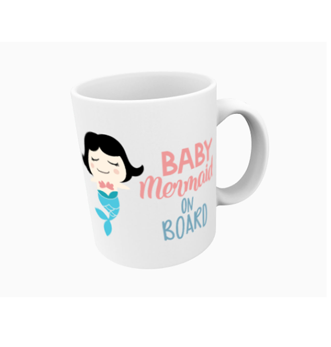 Our ‘Baby mermaid on board’ Mug can be a lovely gift any time of year. If you want to personalise the mug with a message please write this in the box below.