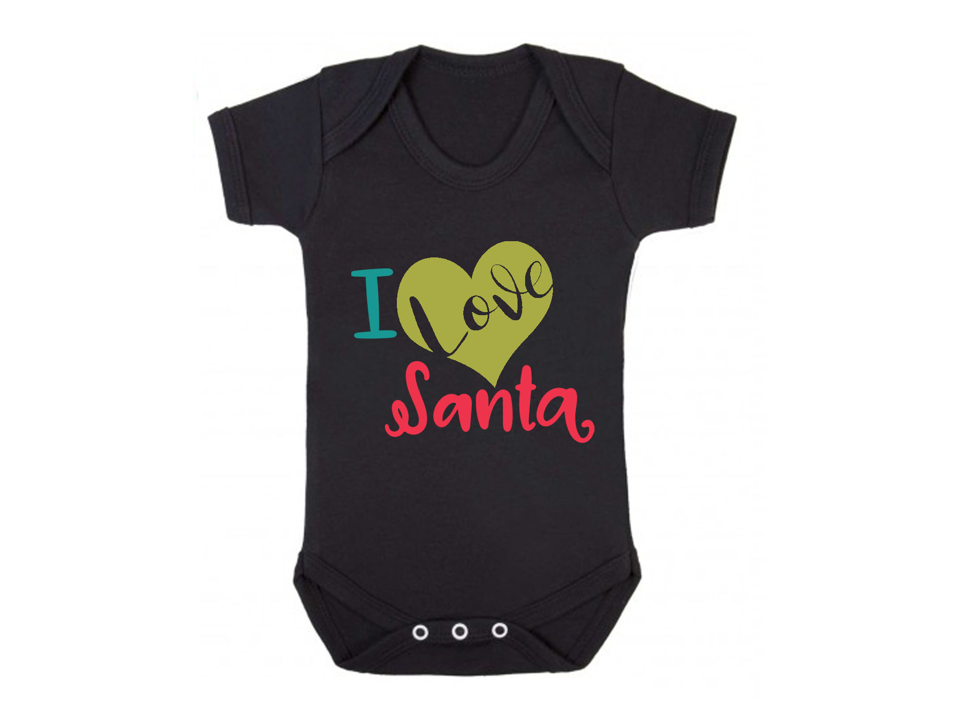Our 100% Cotton ‘I Love Santa’ short sleeve vest is available in 4 colours. To make sure the vest stands out, when choosing a coloured vest the writing will change accordingly.