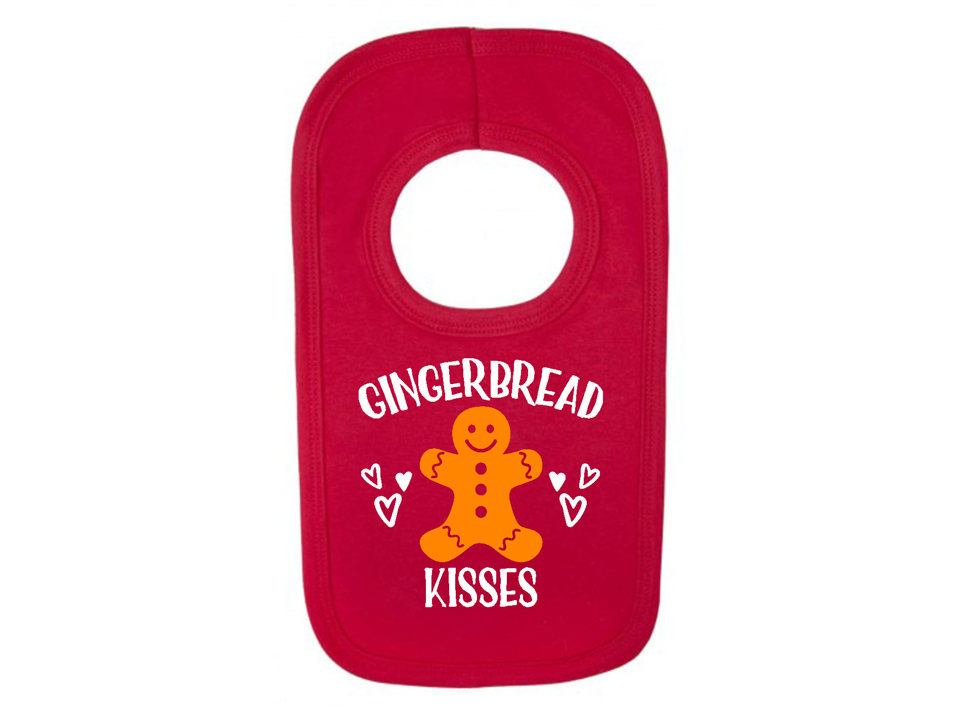 Our 100% Cotton ‘Gingerbread Kisses’ Bib is available in 3 different colours. One size bib fits newborn-2 years.