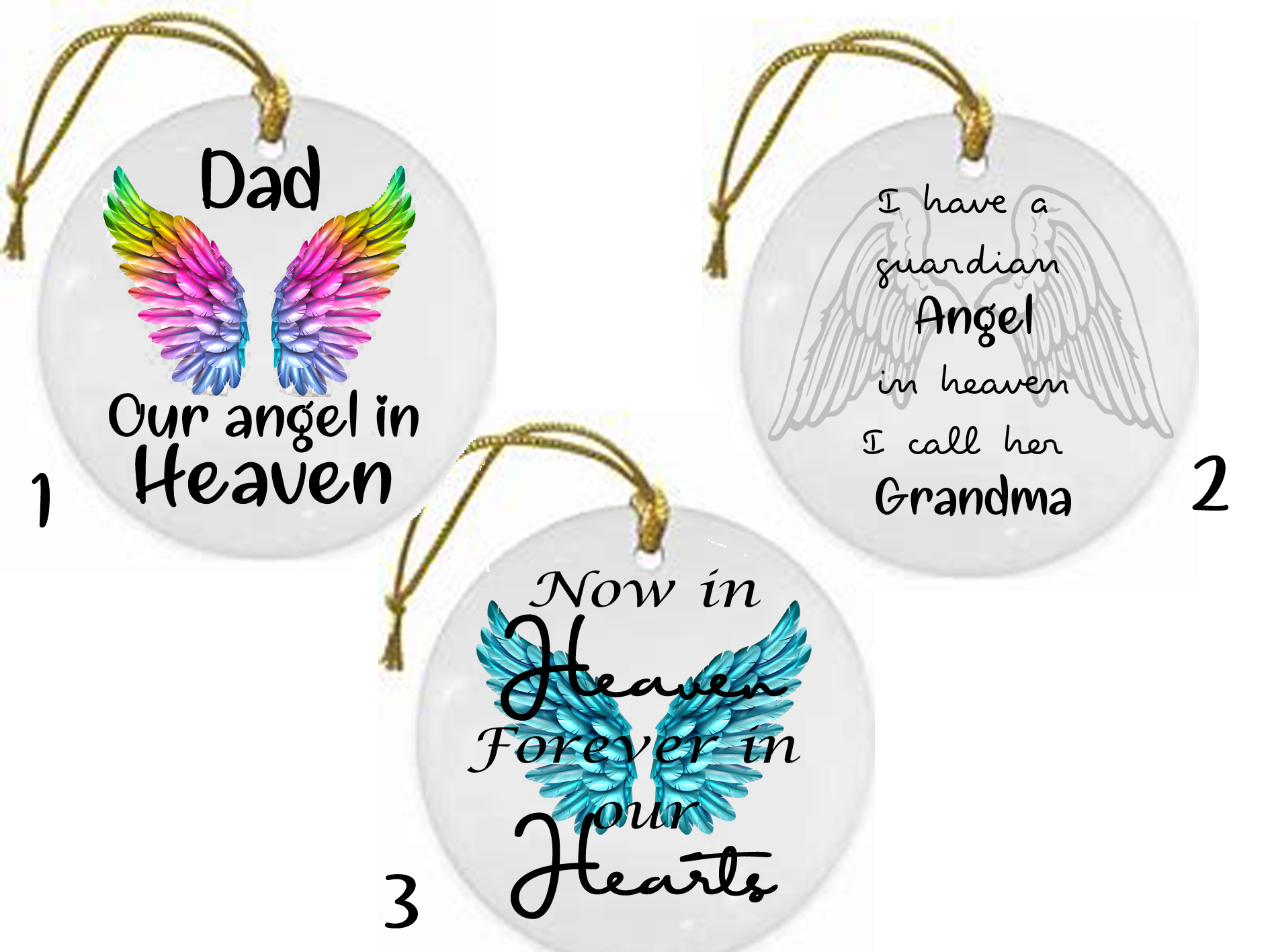 Our angel ornament designs are to remind us that although they have gone, our friends and family will never be forgotten and always have a space in our hearts and our home. Simply add the name below. If the 3rd design is chosen a name will be added to the back.